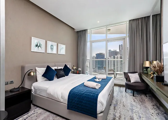 To enjoy your vacation in Dubai, stay at Studio Apartments With City View At Damac Maison Prive Dubai, which is 3.4 km from Godolphin Stables and about a 10-minute ride from the Burj Plaza. Wi-Fi and complimentary private parking are also available at the apartment.